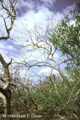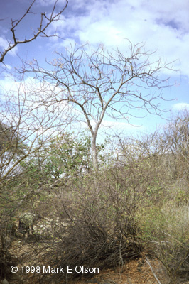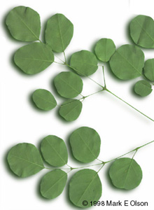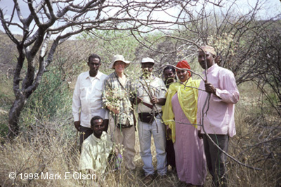 In 1998, I revisited the type locality to look for M. arborea. In the same canyon, I found almost a dozen individuals, and locals informed me that the tree was more widespread. But the trees were leafless when I saw them, too. I collected many cuttings and two small plants. All the cuttings and one small plant remained with the Kenya Forestry Research Institute (KEFRI) and I the other small plant back to Missouri. Now, we have an idea of what the leaves look like!