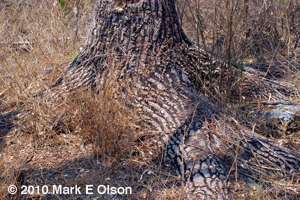 in much drier tropical forest. It typically has a very thick base and