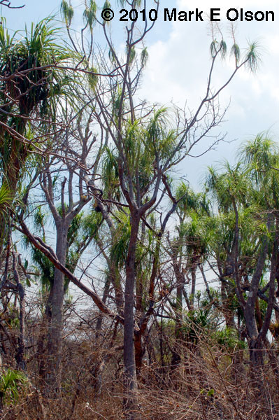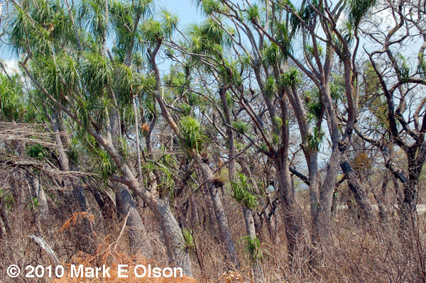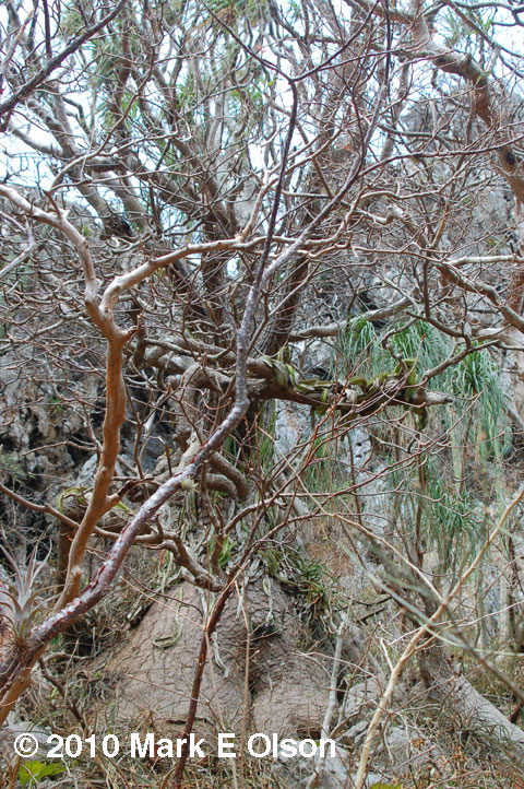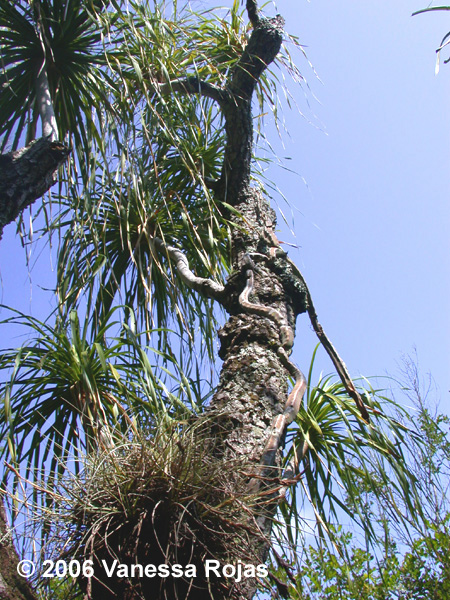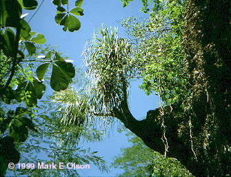 home on a pine tree. This species grows in dry tropical scrub and has