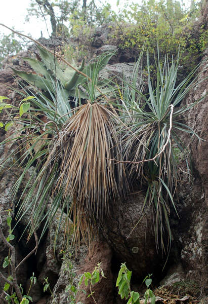 This population of Beaucarnia goldmanii was growing in dense dry tropical forest on a steep limestone slope. The plants were much smaller than in the grove shown above. |