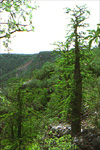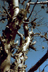 tree with shaving brush-like tufts of leaves on skinny stems that