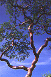 by metallic, peeling bark.