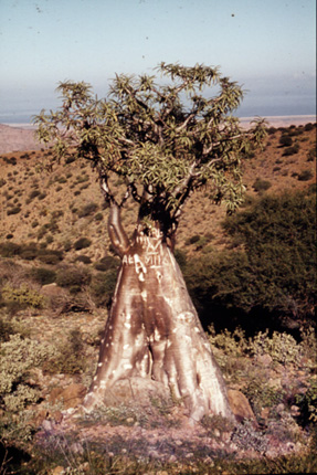 of northern Somalia. The thick plant is Dorstenia gypsophila, a member